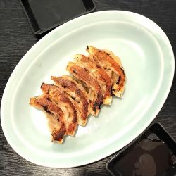 それぞれラーメンを注文し、絶品の餃子300円をコール。1人前300円と格安ですので、ここは2人で2人前頼んじゃいましょう♪ラーメンより、だいぶ先に着皿しましたよ。